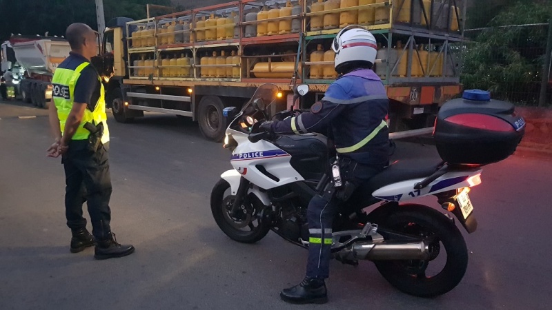 Et ce mardi 27 août matin, dès 6h, les effectifs de la Délégation Départementale de la Sécurité Routière de la DDSP974 poursuivaient les contrôles route de littoral. Quarante contraventions ont été relevées en deux heures dont 25 à l'encontre de poids lourds avec quatre dépassements non autorisés et neuf absences de bâche lors de transports de granulat.