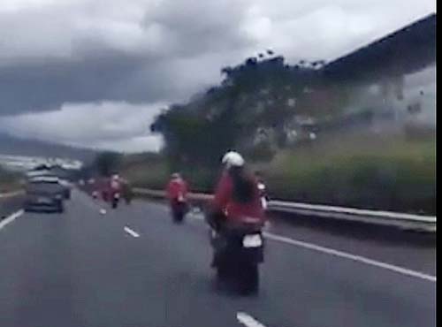 Noël est à nos portes et les idées pour fêter dignement l'attente avant le réveillon se multiplient. Cette bande de dalons a décidé d'initier le Père Noël et ses lutins aux joies de la moto. C'est donc à bord de grosses cylindrés, tout de rouge vêtus et barbes déployées, qu'ils ont défilé sur la 4 voies de la Possession. Un lutin internaute les a filmés et nous a fait parvenir ses images. Merci Melou 974 et joyeuses fêtes de fin d'année