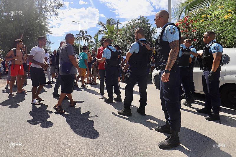 • [LA LOI I ARIV] Le kolektif crie "Rényoné en colère", les gendarmes débraquent sur les lieux.  La foule crie et les gendarmes repartent. La rpotestataion est vive