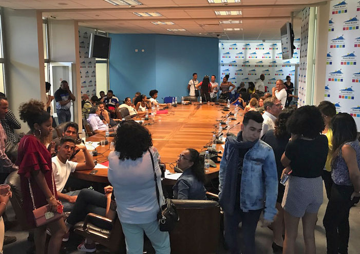 Ambiance tendue bien que sans trop d'illusions à la Région en ce début d'après-midi, vendredi 3 août 2018. La rencontre très attendue par les familles avec les membres du cabinet du Président de Région et un directeur général adjoint des services, Patrice Bertil, n'a pas tourné à l'avantage des étudiants. Les élus régionaux campent sur leurs positions, ces bourses ne relèvent pas de leur compétence mais de la compétence des régions d'accueil. Ainsi que de l'Etat. Le discours n'a pas évolué d'un iota depuis le début de la semaine. Les familles, excédées, ont décidé d'occuper les lieux une fois de plus.