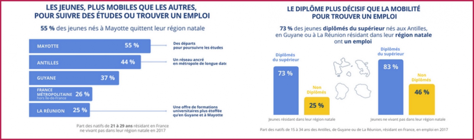 C’est nettement moins qu’aux Antilles, malgré une offre de formation assez semblable ; les Antillais ont un réseau ancré de plus longue date en France métropolitaine, notamment en région parisienne, ce qui peut favoriser leur mobilité.