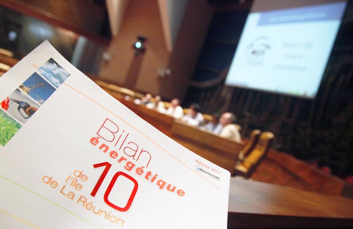 Comme chaque année depuis 2006, l'observatoire énergie Réunion (OER) a présenté le bilan de la situation énergétique à La Réunion. Concernant l'année 2010, on peut noter que l'île reste très dépendante de l'extérieur pour sa consommation d'énergie. En effet, pour répondre à la demande énergétique des Réunionnais, 1 465 550 tonnes de combustibles fossiles ont été importées en 2010. On remarque par ailleurs le ralentissement de la consommation d'électricité, la stabilisation de la consommation de carburants dans le secteur du transport routier, ainsi que la reprise des énergies renouvelables et du solaire thermique.