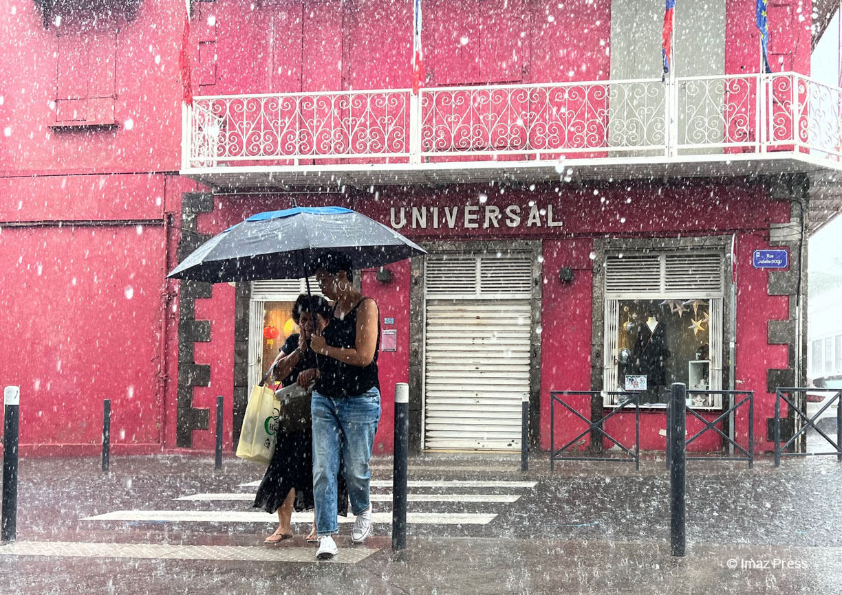 L'ensemble de La Réunion sera placée en vigilance jaune "fortes pluies, orages" à compter du samedi 31 décembre à 11 heures. La plus grande prudence est recommandée aux abords des ravines et des bassins, tout particulièrement en ce jour de réveillon du jour de l'An. (Photo pluie Saint-Denis photo RB imazpress)