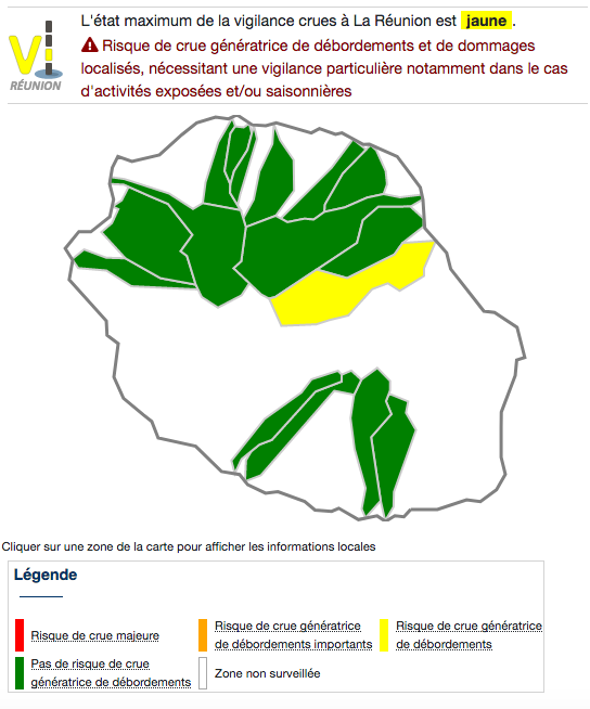 Ce jeudi 16 janvier 2020, en fin d'après-midi, de fortes précipitations ont commencé à s'abattre sur les hauts de l'est de l'île. Ces fortes pluies entraînent des réactions modérées sur les bassins versants de ce secteur, en particulier sur celui de la rivière des Marsouins. Le courant d'eau a donc été placée en vigilance crue de niveau jaune par les services de la préfecture par mesure de sécurité. (photo d'illustration rb/www.ipreunion.com)