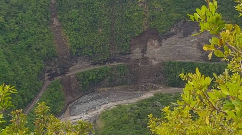 Sur la RN5 Route de Cilaos, suite à un nouvel éboulis qui s'est produit entre Ilet Furcy et Petit Serré ce vendredi 26 janvier 2018, la route est totalement coupée à la circulation. (Photo : Radar 974)