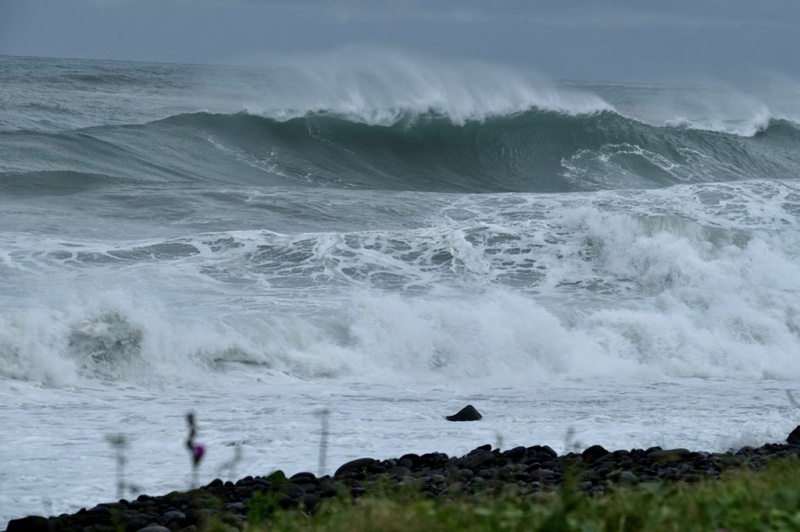 Morceau choisi de notre traversée de la Route du littoral sous la pluie, et avec déjà une forte houle qui amène de nombreux paquets de mer. Prudence sur les routes.