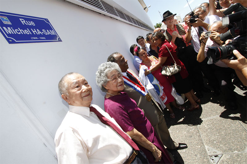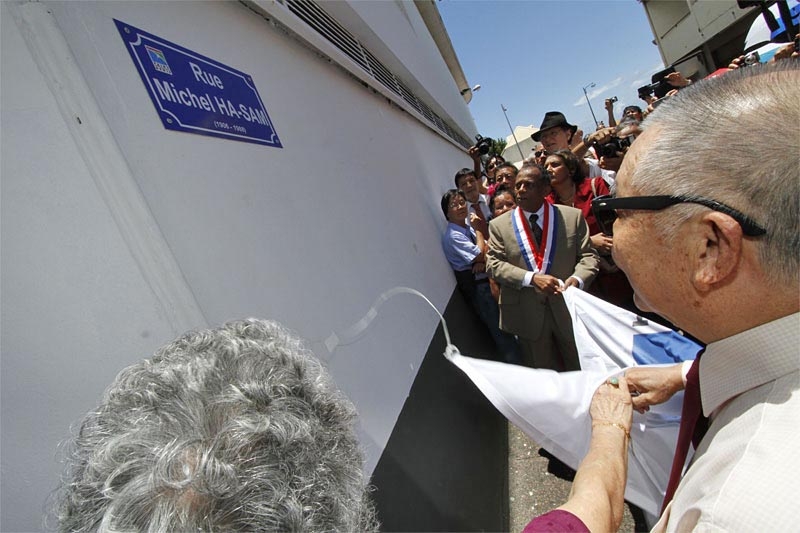 La rue des " Limites " où Michel Ha Sam vécut ses dernières années, portera désormais son nom. Ainsi en a décidé la municipalité de Saint-Denis. La célébration officielle d'inauguration s'est tenue ce mardi 16 février 2010.