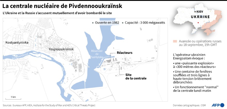Sur le terrain lundi, l'Ukraine a accusé l'armée russe d'avoir bombardé le site de la centrale nucléaire de Pivdennooukraïnsk, dans le Sud du pays, après des semaines de tensions autour de celle de Zaporijjia, occupée par Moscou et visée par de multiples frappes.
