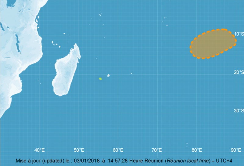 Selon Météo-France, "une cyclogenèse pourrait avoir lieu en zone de responsabilité australienne. Avec une trajectoire orientée vers l'ouest-sud-ouest, ce système pourrait entrer au cours du week-end dans notre zone avec une intensité significative".