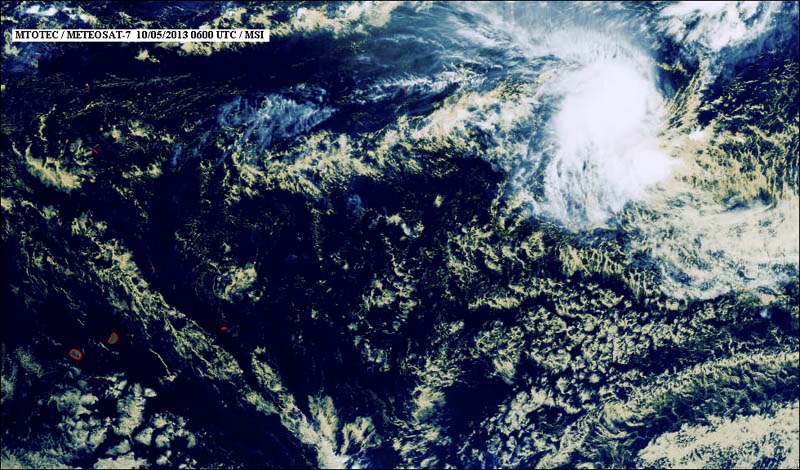 À 10 heures ce vendredi 10 mai 2013, le système dépressionnaire suivi par Météo France a été baptisé Jamala. La tempête tropicale modérée se trouvait toujours à 3 550 km à l'est-nord-est des côtes réunionnaises. Elle se déplace maintenant vers le sud à la vitesse de 4 km/h. Près du centre de la dépression les vents soufflent à 75 km/h avec des rafales atteignant 105 km/h. Selon Météo France, le système dépressionnaire devrait le stade de forte tempête tropicale ce dimanche 12 mai. Les météorologues n'envisagent aucune alerte cyclonique d'ici les prochaines 72 heures. Il est rare qu'un système dépressionnaire de cette importance se forme à cette période de l'année (Image satellite : http://www.mtotec.com/).