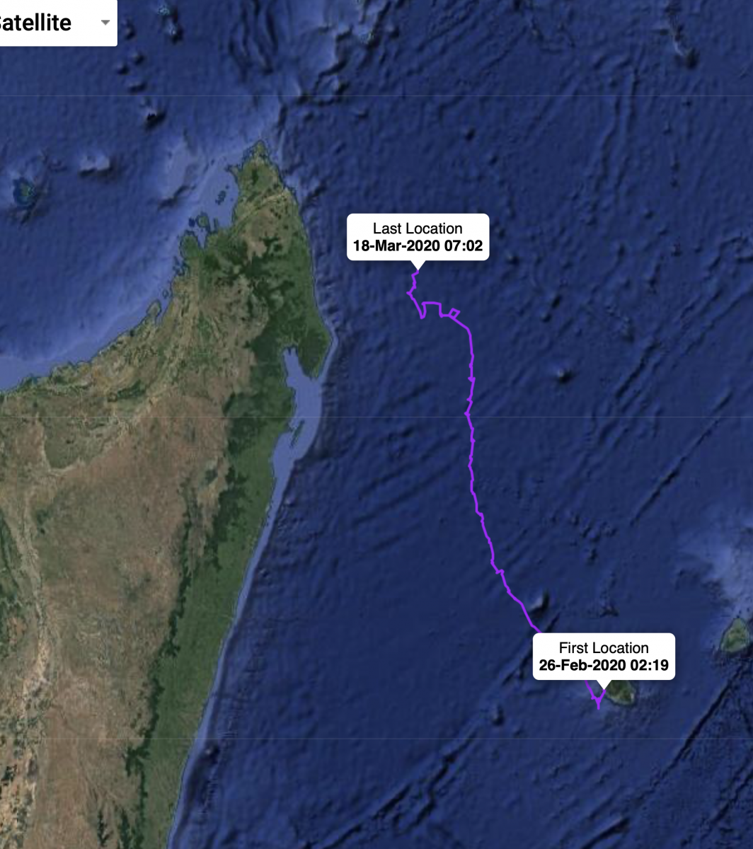 Alors que l'île est à l'arrêt après les mesures de restrictions prise contre la propagation du coronavirus, les tortues, elles, n'arrêtent pas de bouger ! Kelonia, l'observatoire des tortues, nous informe que la jeune tortue India a repris sa migration vers le Nord, après avoir été perturbée par le cyclone Herold.