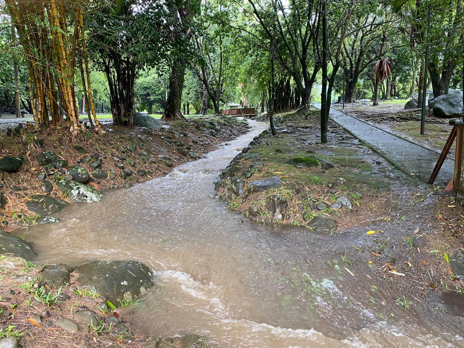 A Saint-André, les alentous de la Rivière du Mât sont submergés.