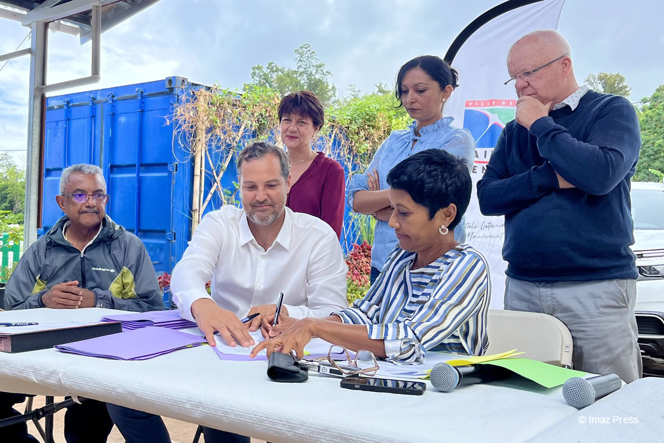 Porteur de handicap, Théodore Oreo a lui aussi signé une convention d'attribution. "Mi done mon kor et mon lam pou okip ma tèr...Mi di mersi la méri, li lla aid porte mon projé". Regardez