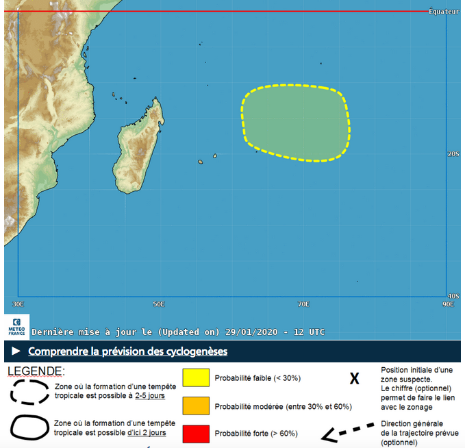 Dans son bulletin daté du 28 janvier 2020, le Centre météorologique régional spécialisé (Cmrs) précise "les données de prévisions ensemblistes à longue échéance proposent dans ce contexte un signal de cyclogenèse significatif pour le début du mois de février."