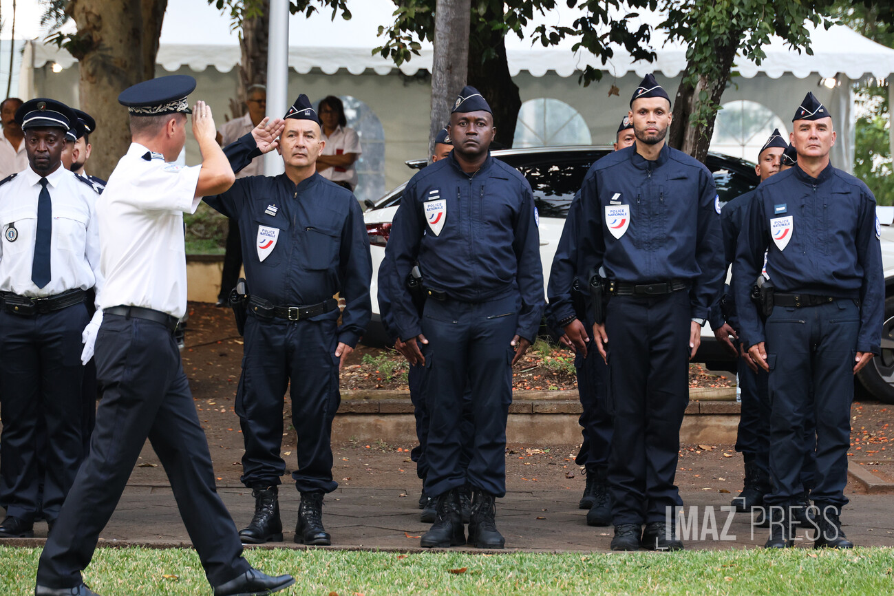 La cérémonie s'est déroulée en présence du contrôleur général Christian Nussbaum , chef de la mission Outre-Mer à la Direction Générale de la Police nationale.