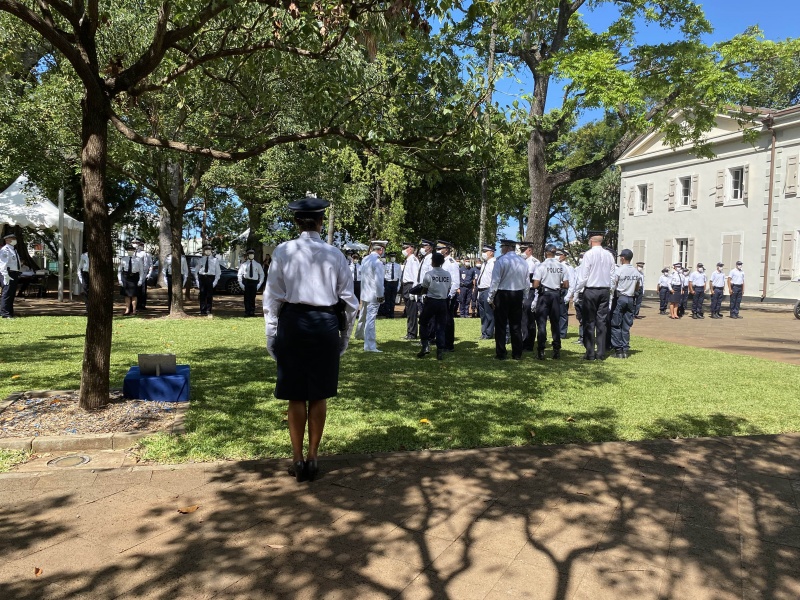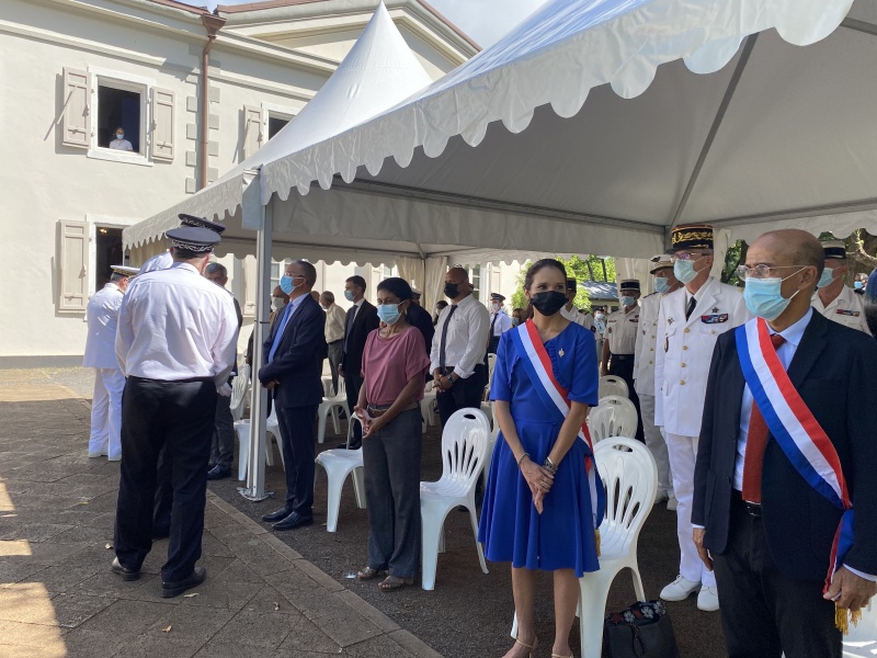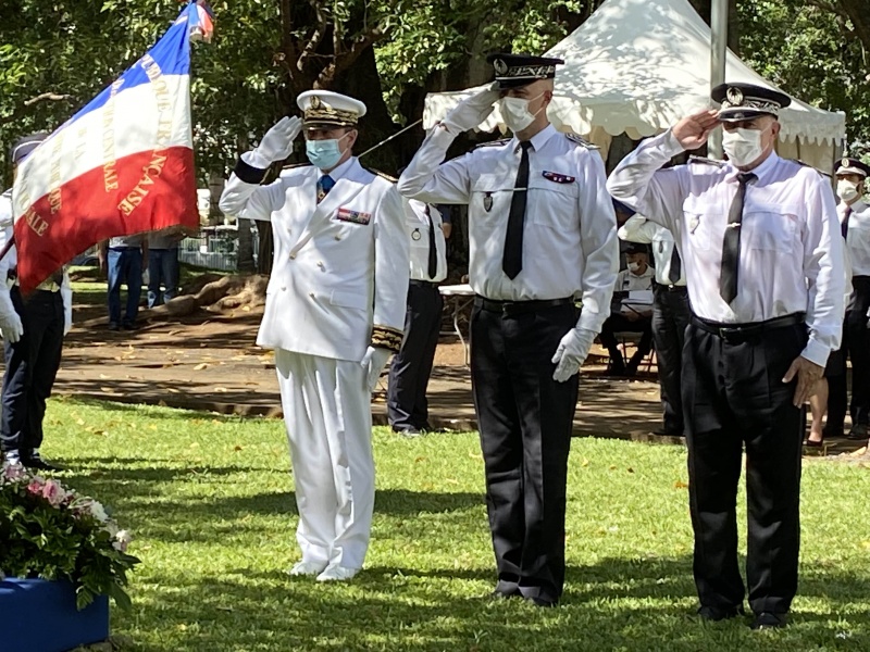 Ce jeudi 17 mars 2022 s'est tenue la cérémonie d'installation du commissaire Laurent Fraysse comme directeur territorial de la police nationale. L'instance regroupe six filières : la sécurité publique, la police judicaire, la police aux frontières, le renseignement territorial, les recrutements et formations ainsi que le Raid. La cérémonie s'est déroulée au jardin de l'Etat en présence du préfet Jacques Billant. Des policiers ont d'ailleurs été décorés pour leur courage sur le terrain, avant qu'une gerbe soit déposée par Jacques Billant, Laurent Fraysse et Christian Nussbaume, commissaire divisionnaire et chargé Outre-mer de la police nationale. (Photos vl/www.ipreunion.com)