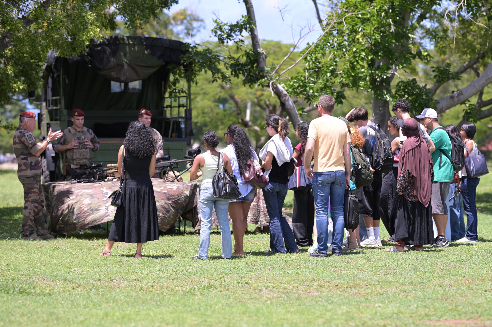 Parallèlement, les autorités ont pu rencontrer les élèves des trois classes défense et sécurité globales (CDSG) conventionnées avec le 2e RPIMa. Présents pour un circuit d’ateliers découvertes, la cinquantaine de collégiens et lycéens des établissements Saint-Charles, Les Tamarins et Marcel Goulette se sont intéressés à l’histoire des troupes de marine auxquelles appartient le régiment, aux différents armements et jusqu’aux aspects techniques du saut parachutiste militaire d’aujourd’hui.