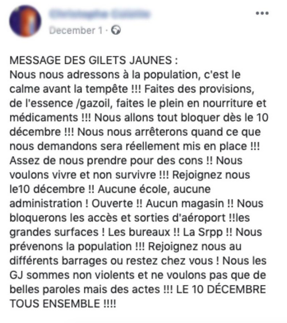 Y-aura-t-il, y-aura-t-il pas des barrages aujourd'hui, lundi 10 décembre 2018, sur les principaux axes routiers et devant les centres commerciaux de La Réunion ? La question mérite d'être posée alors qu'un étrange message circule sur les réseaux sociaux, appelant au blocage et à la paralysie de l’économie…