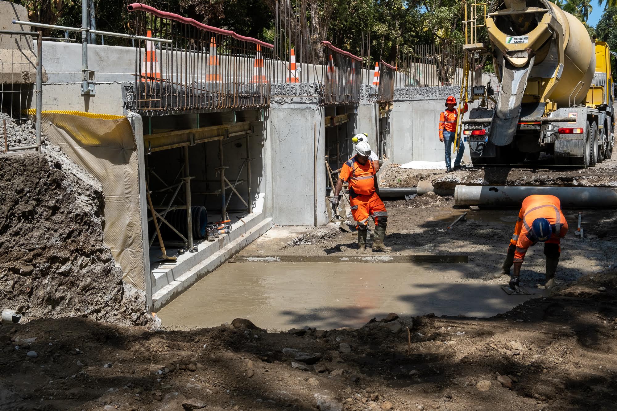 Fin novembre 2022 sera une date importante pour les habitants de Grande Fontaine. Un chantier structurant pour le quartier sera livré. Une visite de chantier permet de voir l’état d’avancement de cet aménagement majeur : la résorption du radier de la ravine Divon sur le chemin Tour des Roches et la pose d’une passerelle au-dessus de la ravine Tête dure.