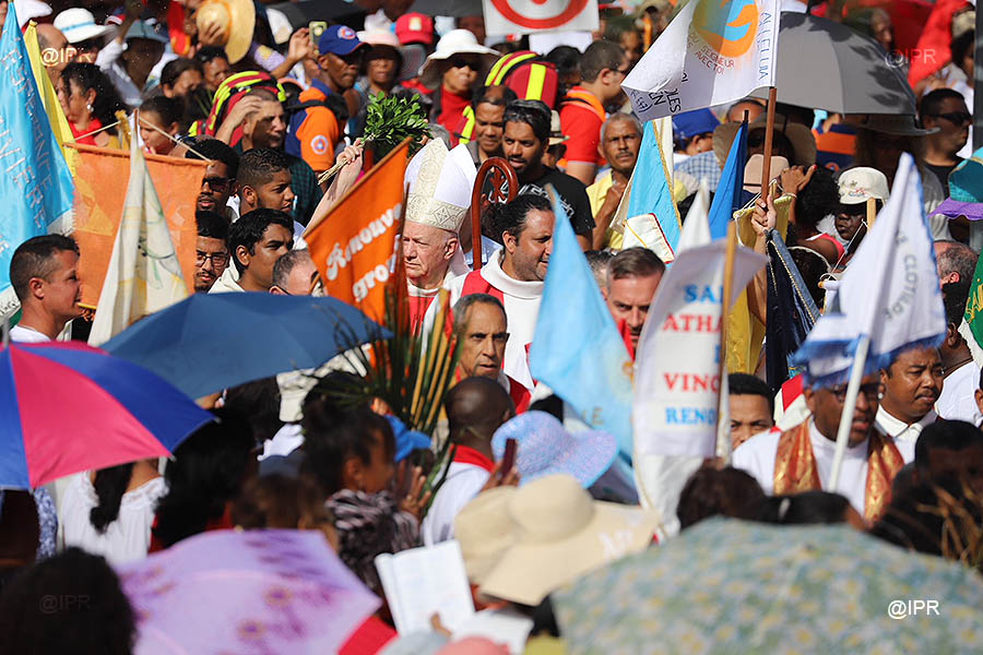 L'évêque de La Réunion est arrivé sur l'Esplanade du Chaudron. Les catholiques redoublent de ferveur.