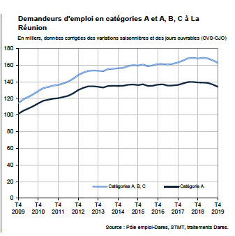 Actualité de La Réunion, Emploi, Chômage, 2019, Trimestre