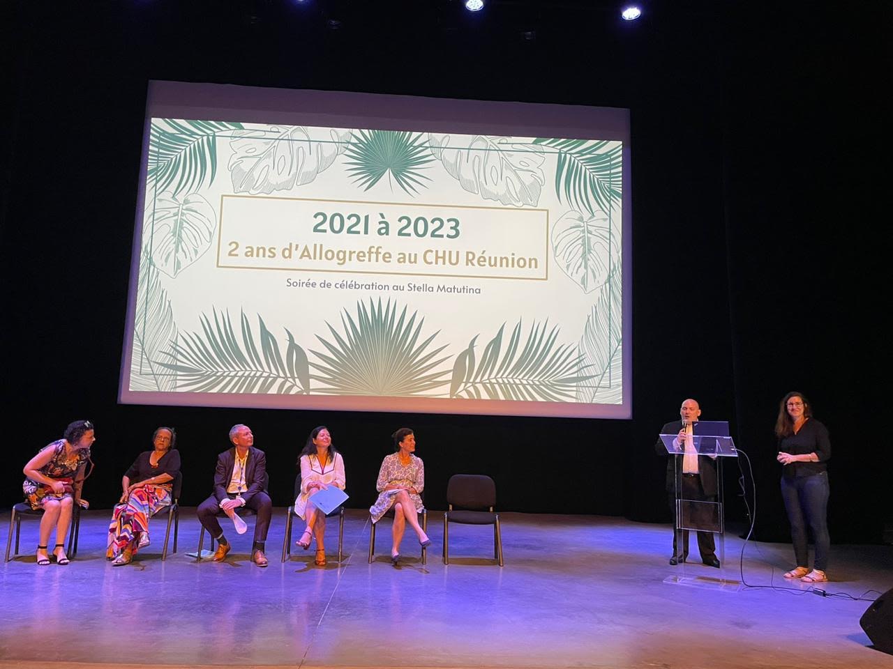 L’allogreffe (greffe sur un individu d'un greffon prélevé sur un autre individu) de cellules souches est possible à La Réunion depuis deux ans. À cette occasion, le service d’hématologie du CHU a réunit ce mercredi 8 novembre 2023 à Stella (Saint-Leu) des patients greffés, des donneurs, des professionnels de santé pour célébrer cet anniversaire en présence de Marine Jeantet, Directrice de l’Agence Nationale de la Biomédecine. Nous publions le communiqué du CHU ci-dessous