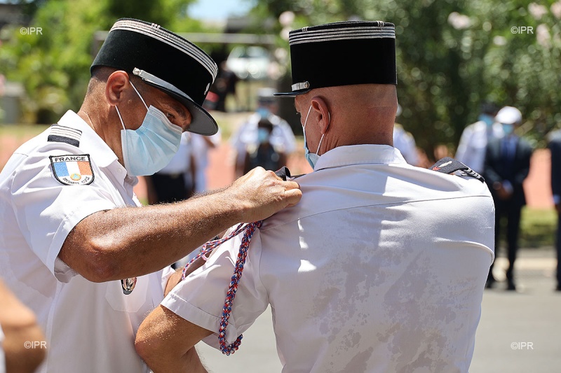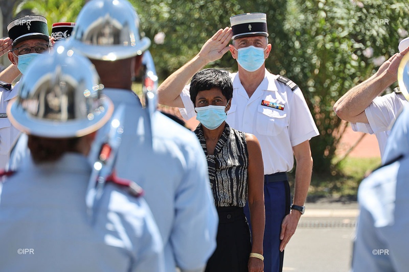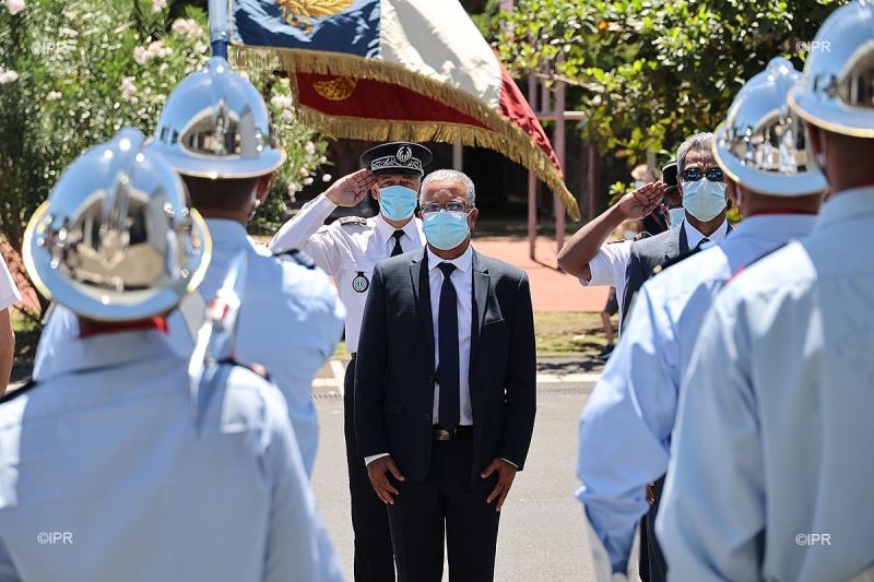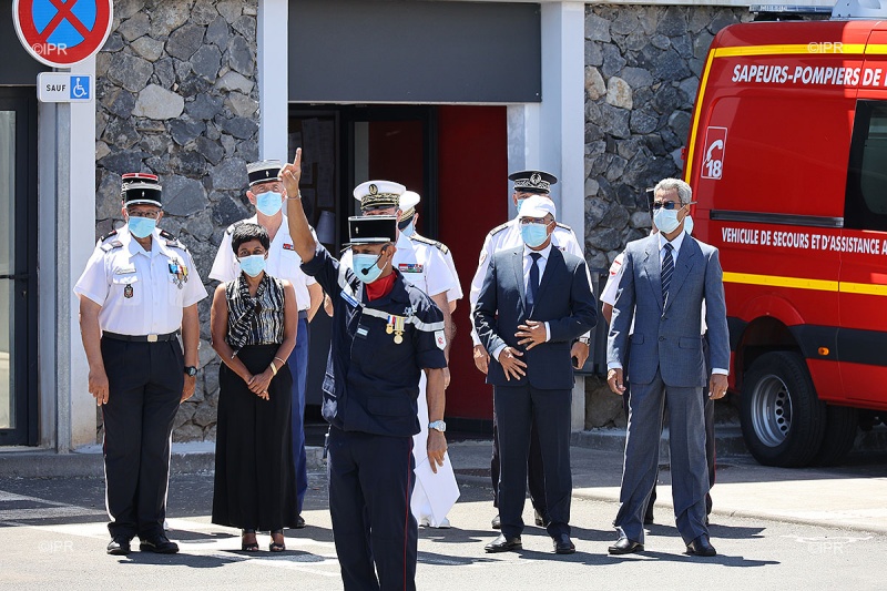C'était jour de cérénomie ce mardi 9 février 2021 à la caserne de pompiers de la ruelle Tadar à Saint-Denis, il s'agissait de célébrer la prise de commandement du colonel Frédéric Léguiller à la tête du service d'incendie et de secours (Sdis) de La Réunion. Anciennement en poste au Sdis de l'Eure, il remplace Hervé Berthouin parti à la retraite (Photo rb/www.ipreunion.com)