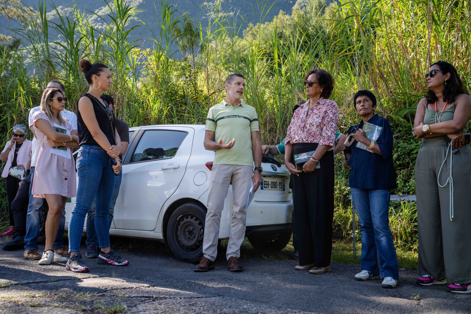 Après une première sortie le mois dernier consacrée aux cours d'eau de Sainte-Suzanne et à la découverte des lieux de nichage des papangues, la séquence du jour a démarré par une visite de terrain à proximité de Mare à Poule d'Eau dans le cirque de Salazie, haut lieu de la biodiversité locale.