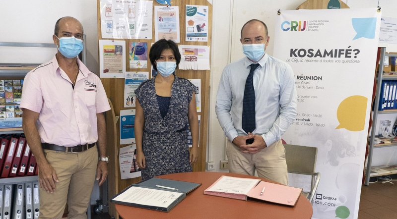 "Depuis septembre 2019, le CRIJ accueille tous les mercredis dans ses locaux les permanences d’un délégué du Défenseur des droits, monsieur Laurent Santamaria. Afin de concrétiser la collaboration entre les deux structures, le Chef de Pôle Régional Réunion-Mayotte, Didier Lefèvre, et la présidente du CRIJ, Christelle Chon-Nam, ont signé une convention de partenariat.