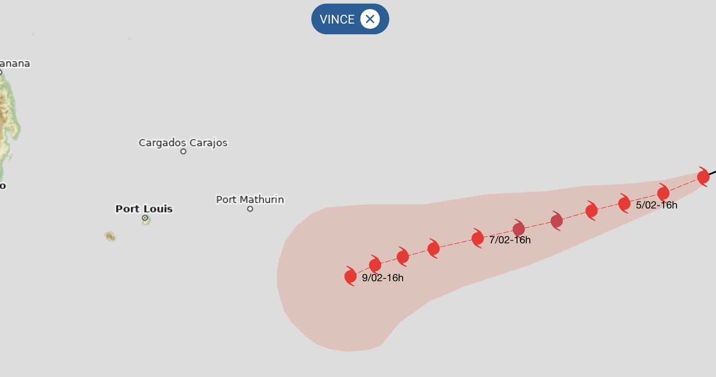 Le cyclone Vince est entré ce mardi matin 4 février 2025 la zone de responsabilité de Météo France. Il évolue actuellement sur l’extrême est du bassin, très loin de toute terre habitée. Au cours des dernières heures, il a connu un léger affaiblissement. Pour les 5 prochains jours, Vince devrait se déplacer en direction de l'ouest-sud-ouest tout en restant à un stade mature, et ne présente aucune menace pour les terres habitées. (Photo photo RB/www.imazpress.com)