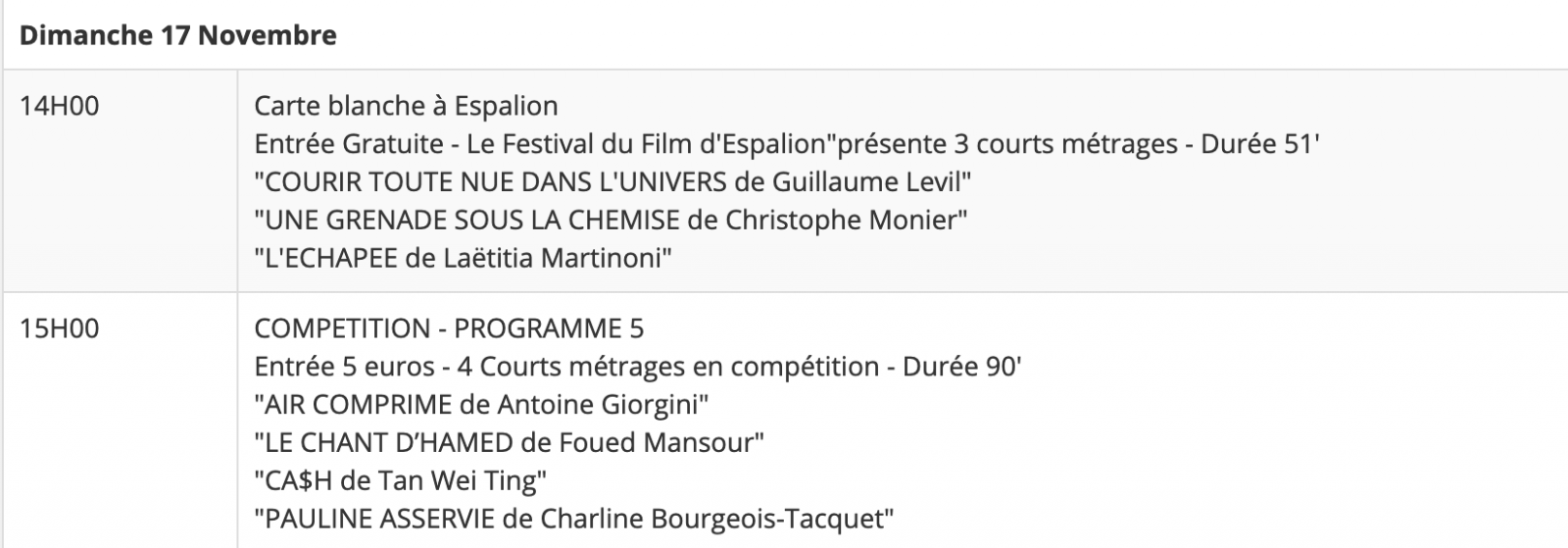 Le Festival du Film Court continue. Cette 4ème édition, commencée le 13, se déroule jusqu'au 17 novembre 2019. Il n'est donc pas trop tard pour profiter des nombreuses séances proposées dans le Sud.