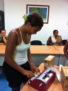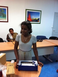 Le Lions club de Sainte-Marie explique que "les jeunes fréquentant le centre de la Ressource sont issus de familles très pauvres ou en situation précaire, ne pouvant accéder à un équipement individuel complet qui faciliterait leur quotidien". Dans le cadre de son soutien aux défavorisés et aux malvoyants, le Lions club a donc remis à Chamaya, 12 ans et Océane, 13 ans, des machines Perkins pour la saisie du braille et des lecteurs audio pour la vocalisation des textes.Depuis deux ans, le club a également mis en place une "journée mondiale de la vue" au mois d'octobre afin de sensibiliser l'opinion publique à la prévention et au traitement de la perte de vue.