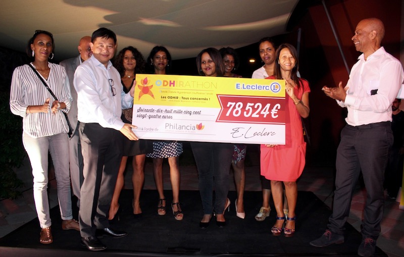 Le comité d'organisation de l'Odhirathon s'est vu remettre un chèque de 78 524 euros par les adhérents du Mouvement E. Leclerc. Cette somme correspond à une double action de mécénat de la part de l'enseigne locale et de l'opération de collecte en caisse réalisée dans le cadre de la manifestation qui s'est tenue du 26 juin au 1er juillet.