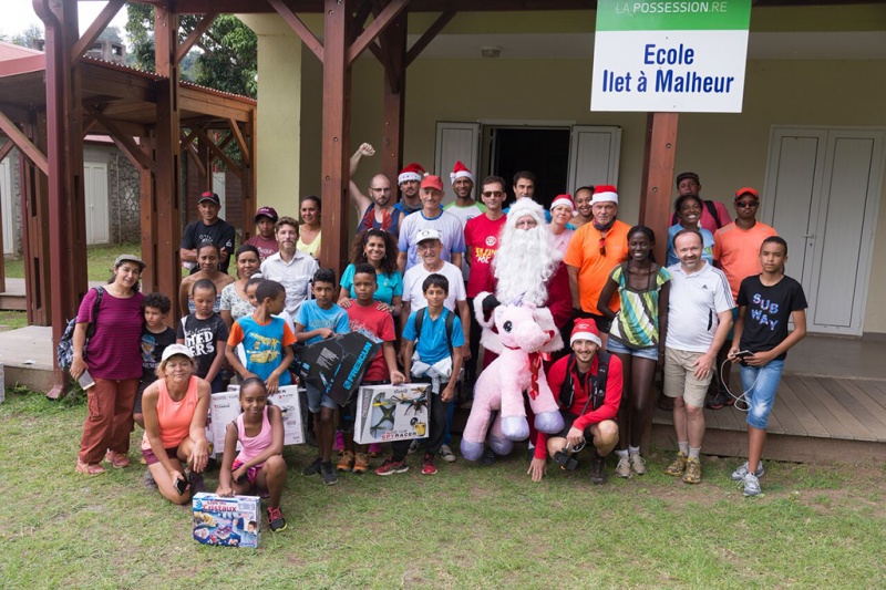 Ce samedi 16 décembre 2017 une équipe de Rotariens a transpiré sur les sentiers, depuis La Possession jusqu’à Mafate, afin de jouer les lutins du Père Noël. Une nouveauté cette année, le Père Noël est venu un samedi, ce qui a permis aux anciens élèves de l’école, collégiens depuis quelques années sur la côte, d’être aussi présents.