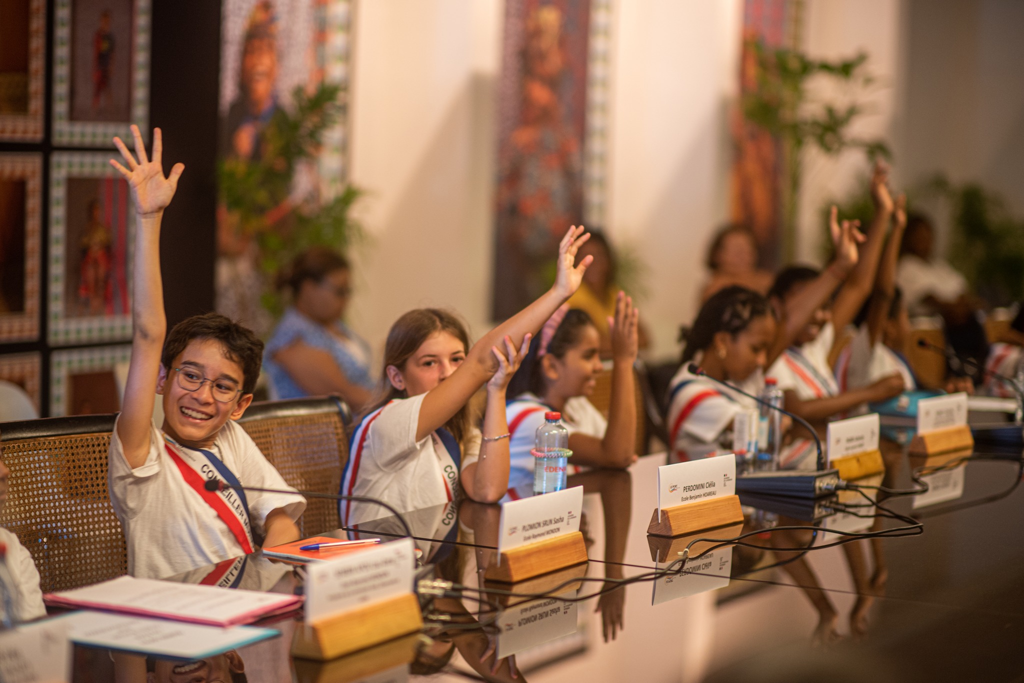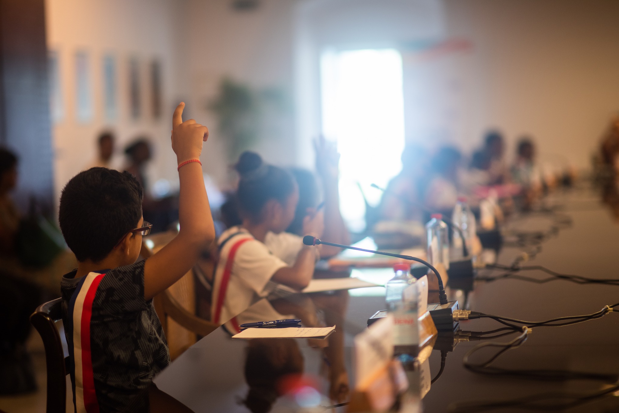 25 des 28 élus du Conseil Municipal des Enfants (CME) se sont réunis ce jeudi 2 février 2023. Après une présentation des projets suivie de débats pour chacune des trois commissions, un vote a permis de sélectionner les cinq projets qui seront mis en œuvre cette année. Cette séance s’est déroulée sous la présidence de la maire-enfant Élise Sautron, en présence des élues Annick Le Toullec et Karine Mounien.