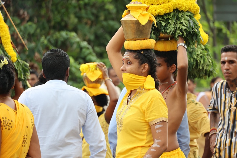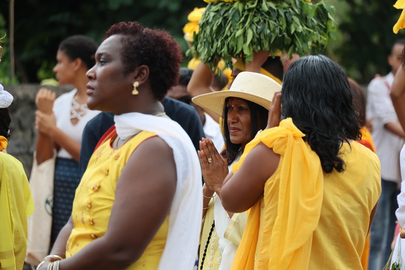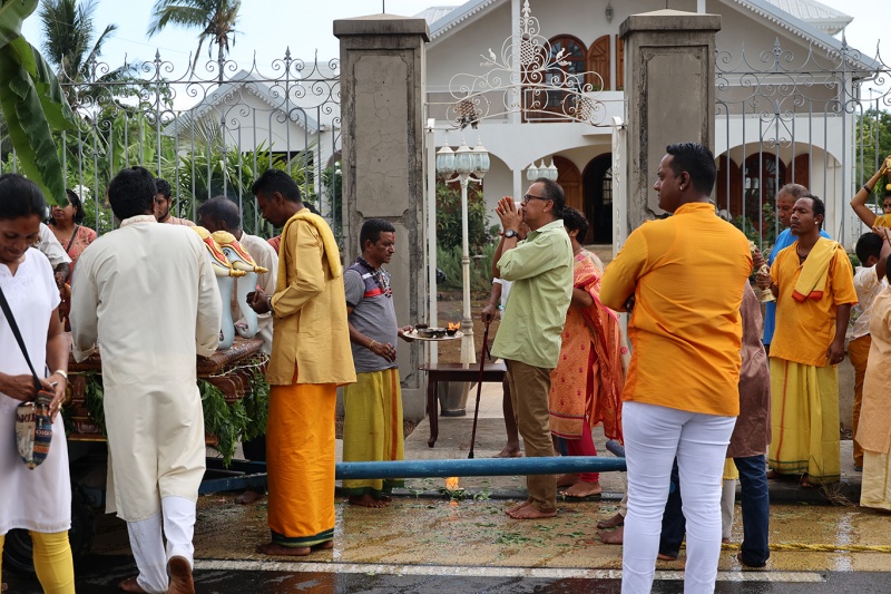 Mariamen, déesse hindoue de la pluie et de l'eau et gardienne de la santé, est mise à l'honneur au temple de la rue Mahatma Gandhi (le Port - la Possession). Une cérémonie a ainsi été organisée ce dimanche 1er mai 2022. Mariamen est une divinité centrale dans la vie religieuse hindoue. Les fidèles lui demandent notamment santé et guérison pour leur famille (Photo rb/www.ipreunion.com)