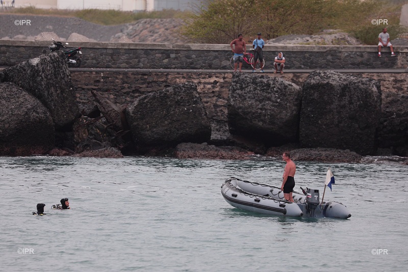 9h00 - Deux plongeurs de la base navale se mettent à l'eau pour continuer les recherches. Quelques badauds, peu nombreux, observent la scène.