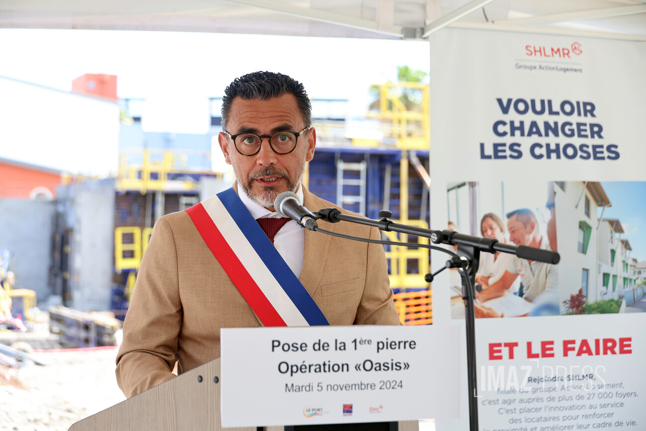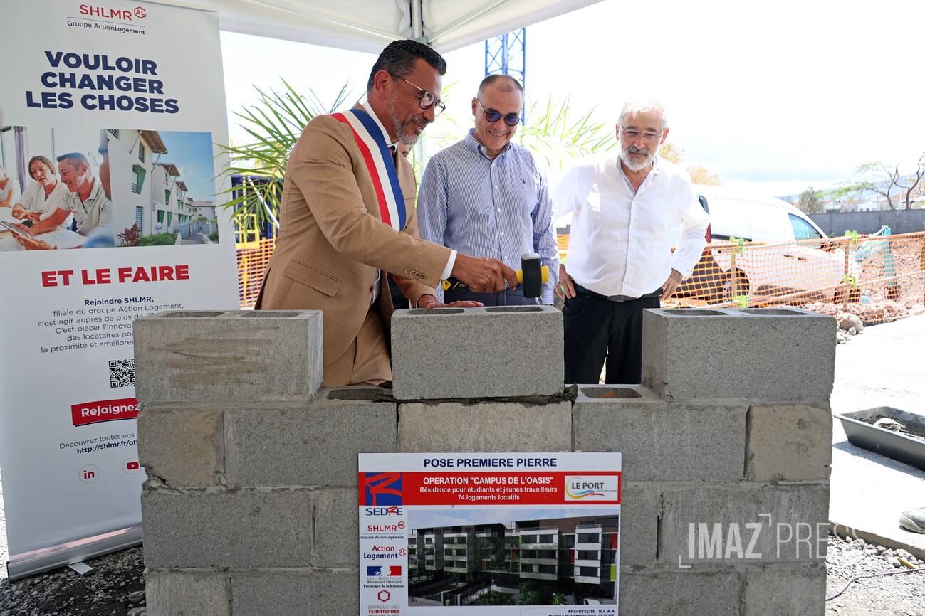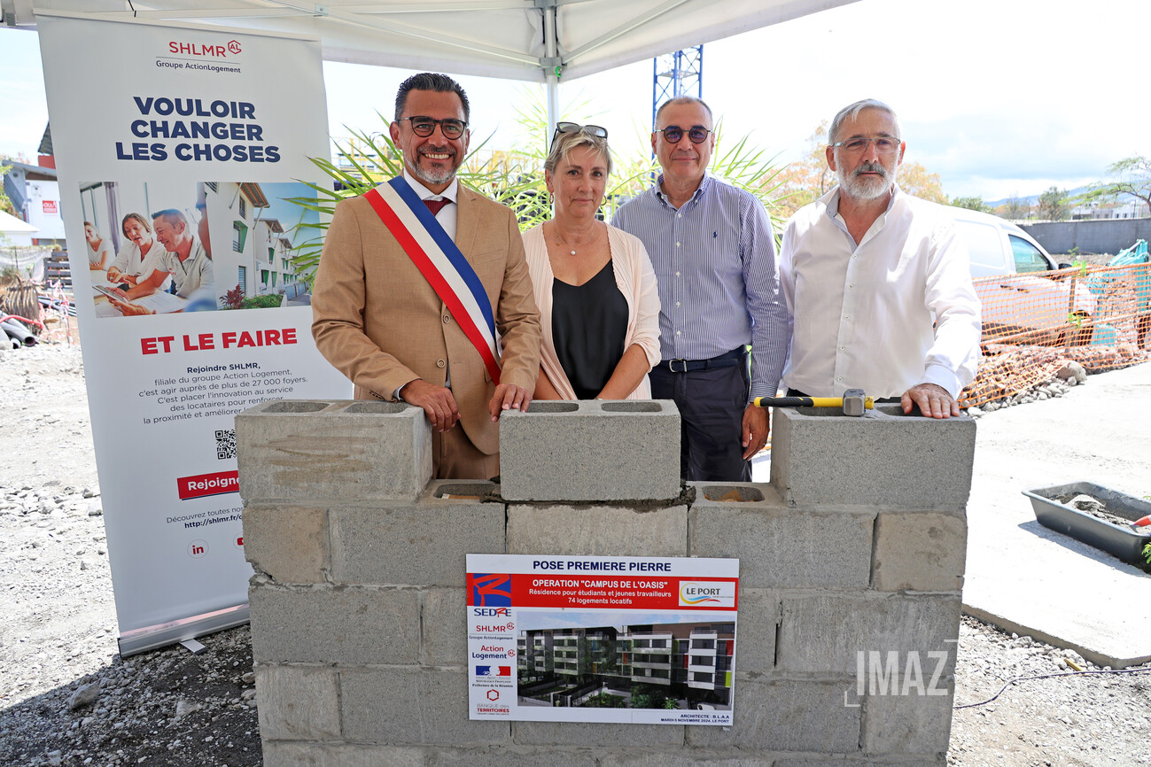 La première pierre de l'opération Oasis a été posée ce mardi 5 novembre 2024 au Port. A terme, cette résidence pour étudiants et jeunes travailleurs accueillera 73 logements, allant du studio au T5 (Photo sly/www.imazpress.com)