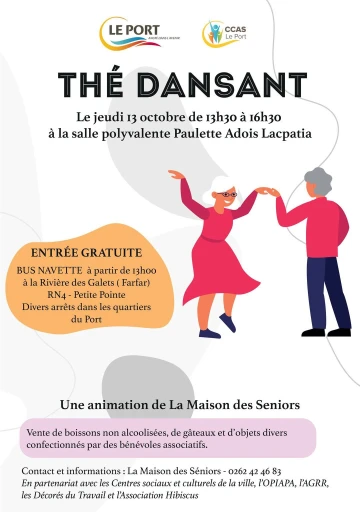 Jeudi 13 octobre 2022 de 13h30 à 16h30, la ville du Port invite les aînés à s'ambiancer à l'occasion du thé dansant des seniors organisé à la salle polyvalente Paulette Adois Lacpatia. L'entrée est gratuite et des bus navettes partiront de 13h à la Rivière des Galers (Farfar) RN4- Petite Pointe. Ils s'arrêteront dans divers arrêts des quartiers du Port. Nous publions ci-dessous le communiqué de la ville du Port. (Photo d'illustration : ville du Port)
