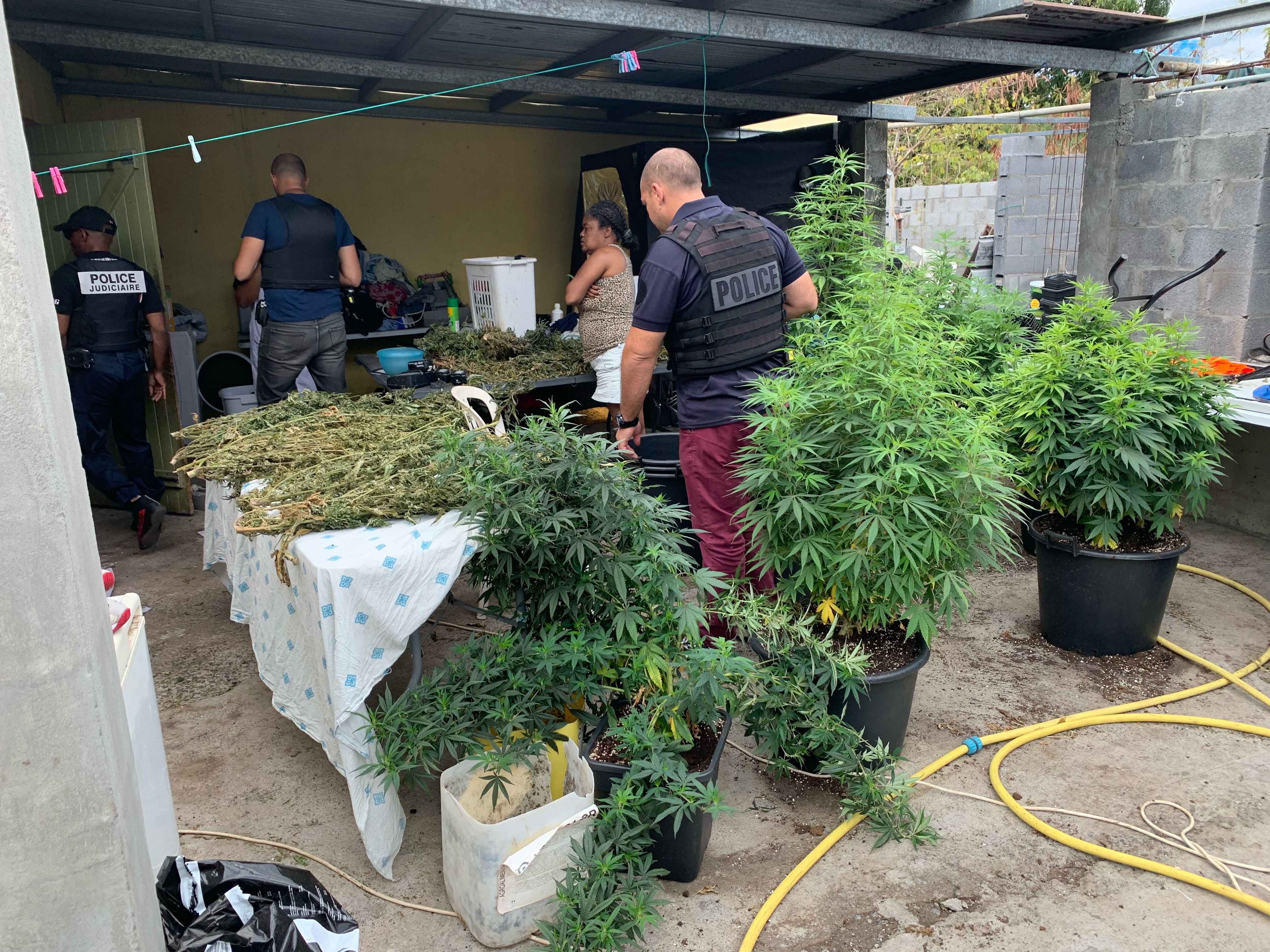 Ce jeudi 22 septembre 2022, quelle ne fut pas la surprise de ce jeune Portois du quartier Titan. Les forces de l’ordre, accompagnées d’un chien renifleur, sont intervenues chez lui et ont saisi 93 pieds de zamal en plantation et 5 kd déjà conditionnés pour la vente chez un particulier. (Photo : Police nationale de La Réunion)