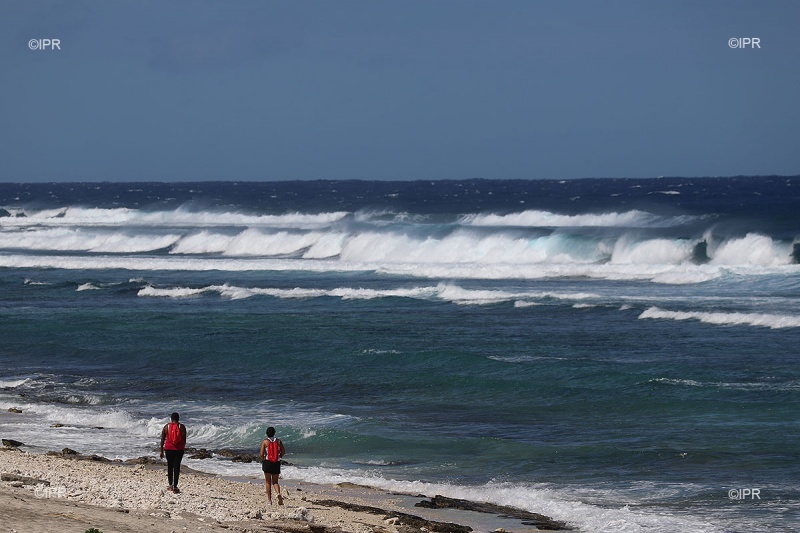 La mer est agitée à localement forte au vent et au déferlement d'une petite houle d'alizé le long du Sud-Sauvage et de la côte Est.