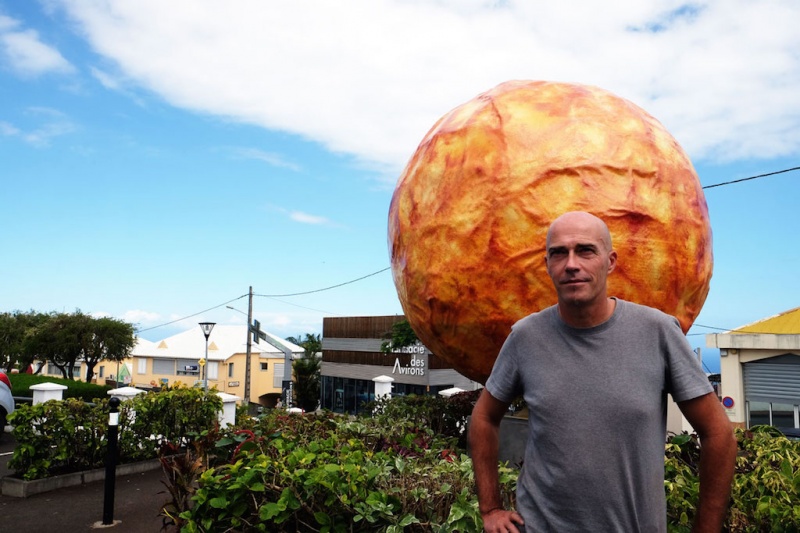 L'inauguration officielle de cette maquette stellaire aura lieu le 1er septembre prochain. Ce matin, c'est sous l'oeil attentif de Xavier Daniel, l'auteur de l'ouvre, que le soleil a été installé sur la place municipale. L'astre de feu surplombe désormais la commune du Sud.