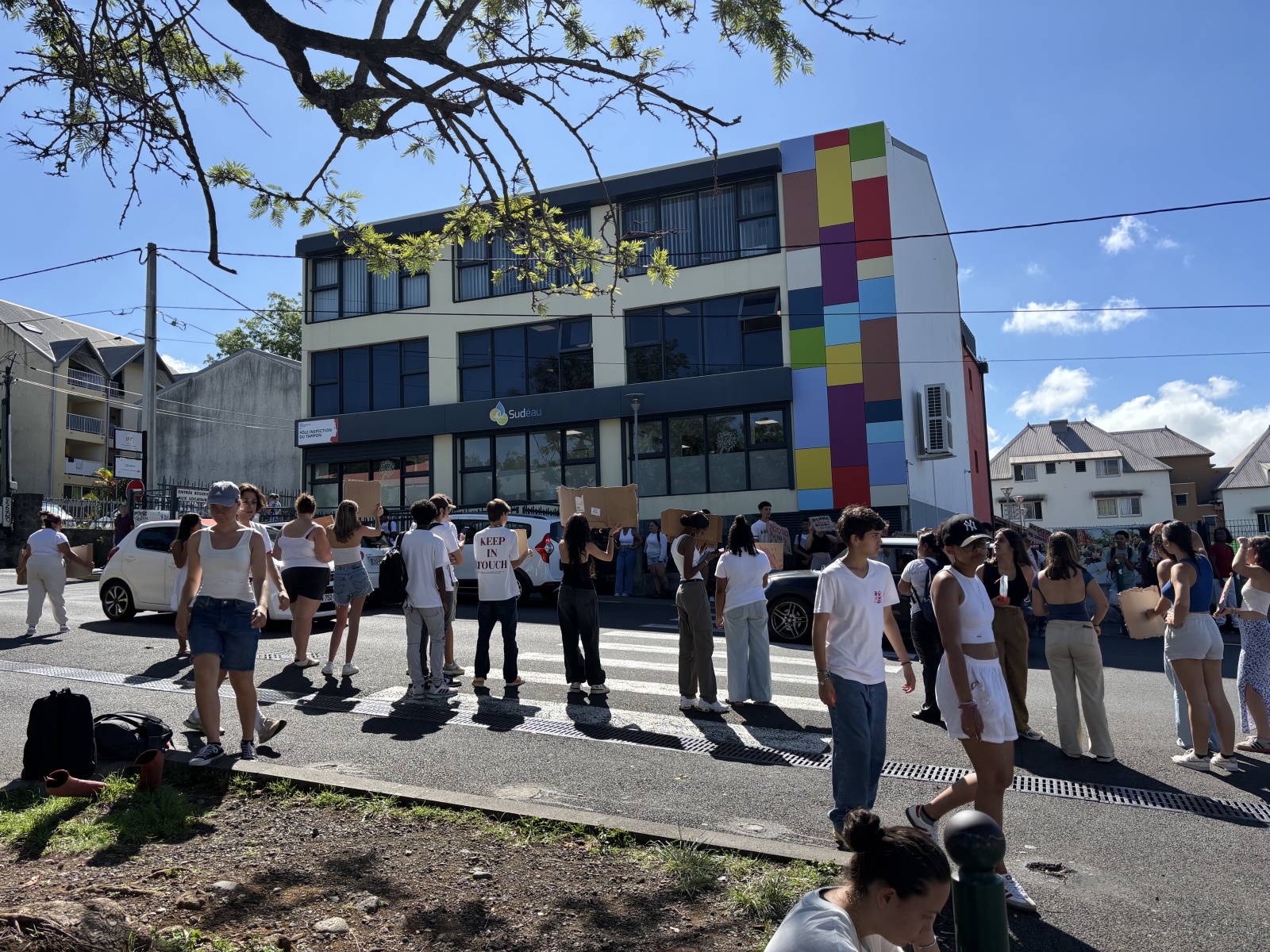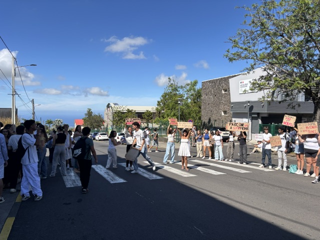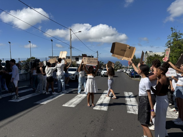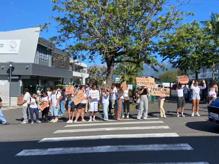 Ce jeudi 5 décembre 2024, les élèves élus du lycée Roland-Garros se sont regroupés devant leur établissement du Tampon. Ils se sont mobilisés pour "défendre leur avenir et une éducation de qualité", face à des évaluations "incessantes" (Photos : DR)