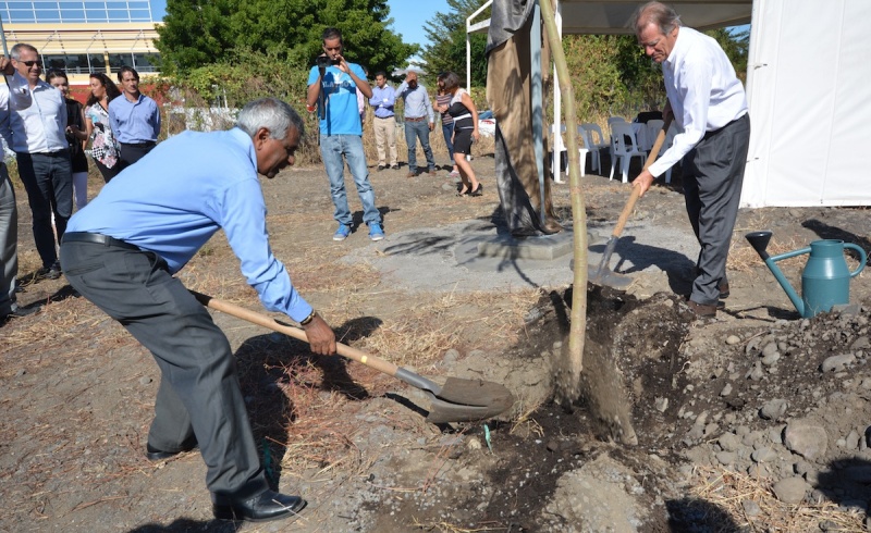 Dans le cadre du Ecocité, la nouvelle municipalité de Saint-Paul s'est entretenue en mai 2014 avec Patrick Charbier, l'un des principaux propriétaires concerné par la construction du coeur d'agglomération du TCO. Ce vendredi 20 juin 2014, un arbre symbolisant cette " intention de coopération " a été planté à la plaine Charbier par le possesseur du terrain, en compagnie de Joseph Sinimalé, président de l'intercommunalité. "L'objectif prioritaire partagé entre les acteurs du secteur public et du prvé est en effet de ne plus retarder la mise en route effective du projet d'Ecocité qui, en raison de son envergure, nécessitera du temps, des moyens considérables et les expertises conjuguées de tous pour être mené avec succès à son terme", indique le Territoire de la côte Ouest. (photo D.R.)