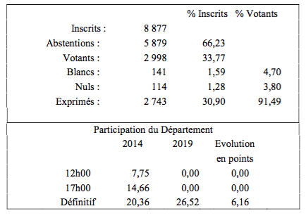 • Guy Hadji (Alliance écologiste indépendante) : 0,03 %