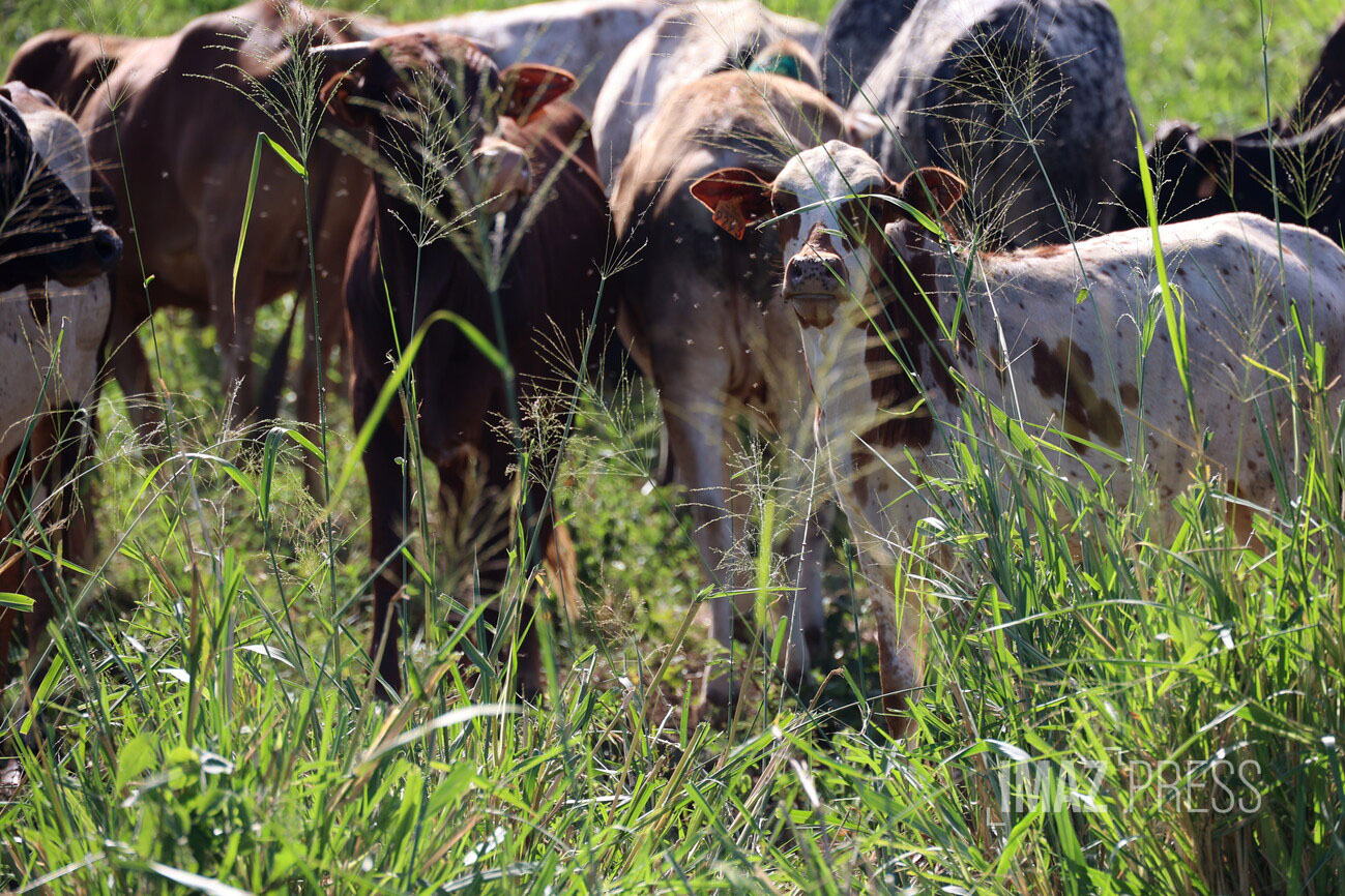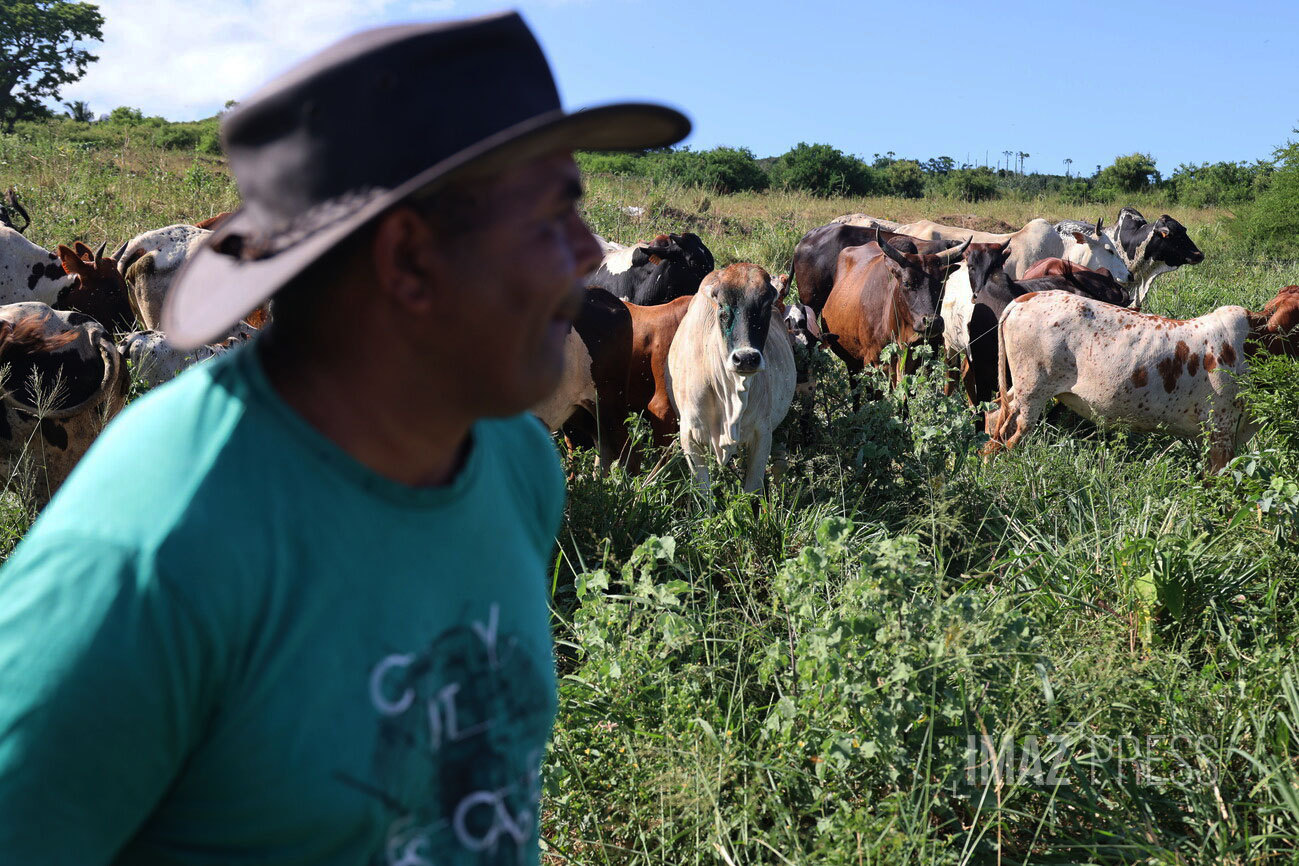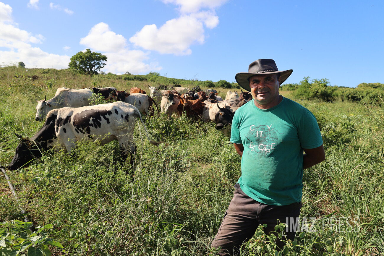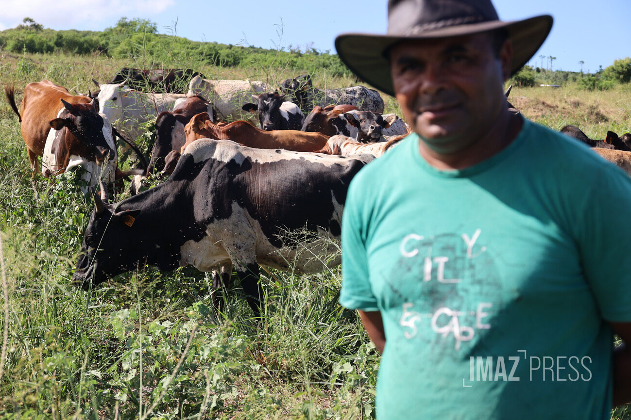 Maximin Delblond, un agriculteur, maraîcher et éleveur, possède un troupeau de 30 bœufs moka qui tournent sur quatre exploitations. Regardez ci-dessous son élevage :
