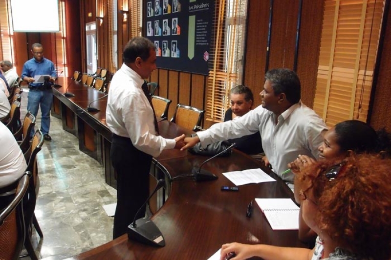 Transporteurs, pétroliers, Etat, chambre de commerce, Région, et Département se sont de nouveau retrouvés ce lundi 2 mai 2011 autour de la table pour discuter des carburants. Deux grandes nouveautés lors de cette réunion, l'association des maires, absente à la précédente réunion, est cette fois-ci présente, représentée par son président, Roland Robert. Des représentants des usagers de la route sont également présents à cette réunion, sous la houlette de Jean-Hugues Ratenon.