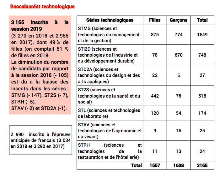 • 3 165 au bac technologique (STMG, ST2S, STI2D, STL, STD2A, STAV, Hôtellerie), soit 25 % des candidats