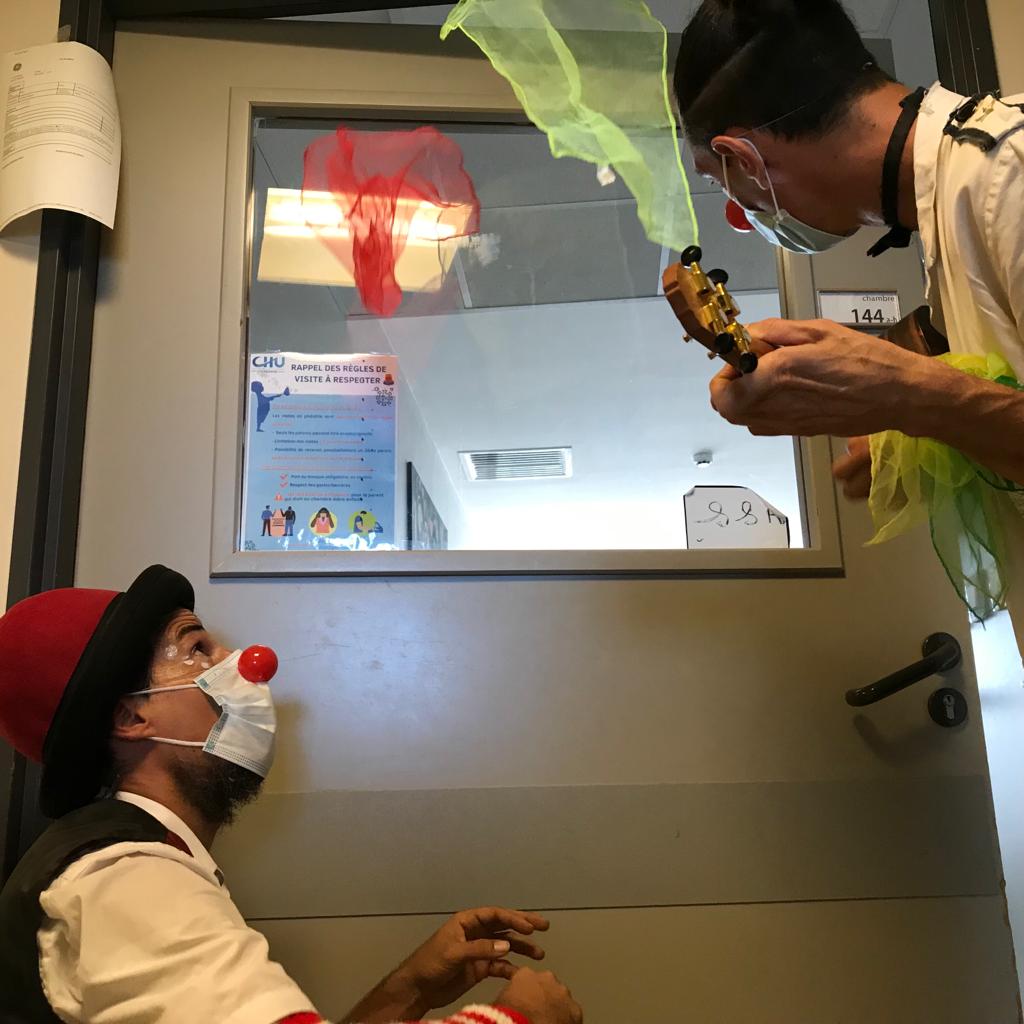 En Août et Novembre dernier, Éclats de l’île a ouvert sa 3ème puis sa 4ème journée clown. Ces spectacles individualisés supplémentaires permettent aux comédiens de passer dans de nouveaux services (dialyse ou chirurgie pédiatrique) offrant à plus de petits patients la possibilité de retrouver leur vraie place d’enfant dont l’hospitalisation les prive trop souvent.