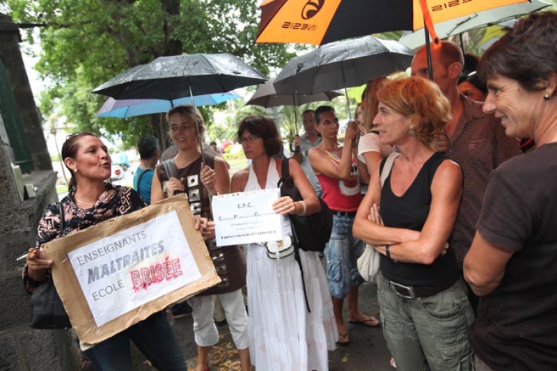 " Le projet est de fermer 19 postes, soit un poste sur trois ", indique Philippe Vivares, conseiller pédagogique à Saint-Joseph, venu manifester devant le rectorat mardi 29 mars. Il fait partie de la délégation qui vient d'être reçue pour expliquer aux services du recteur les implications de la suppression d'un poste de conseiller pédagogique par circonscription dans l'académie." Cela signifie un tiers du travail en moins, un tiers de projets en moins, nous serons moins disponibles pour conseiller les enseignants qui en auront besoin... ", explique-t-il. " Nous avons des postes qui ne se voient pas, nous servons d'interface entre les parents, les professeurs et l'administration. Nous ne demandons pas à être reconnus mais juste à pouvoir travailler ", poursuit-il.